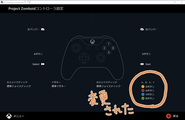この手順は以前書いた記事「Project Zomboid-コントローラーを使用する」に画像付きで掲載していますので、よろしければご参考ください。